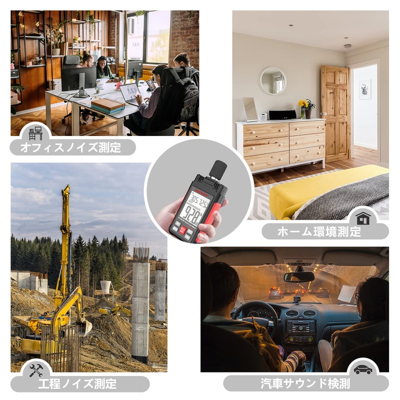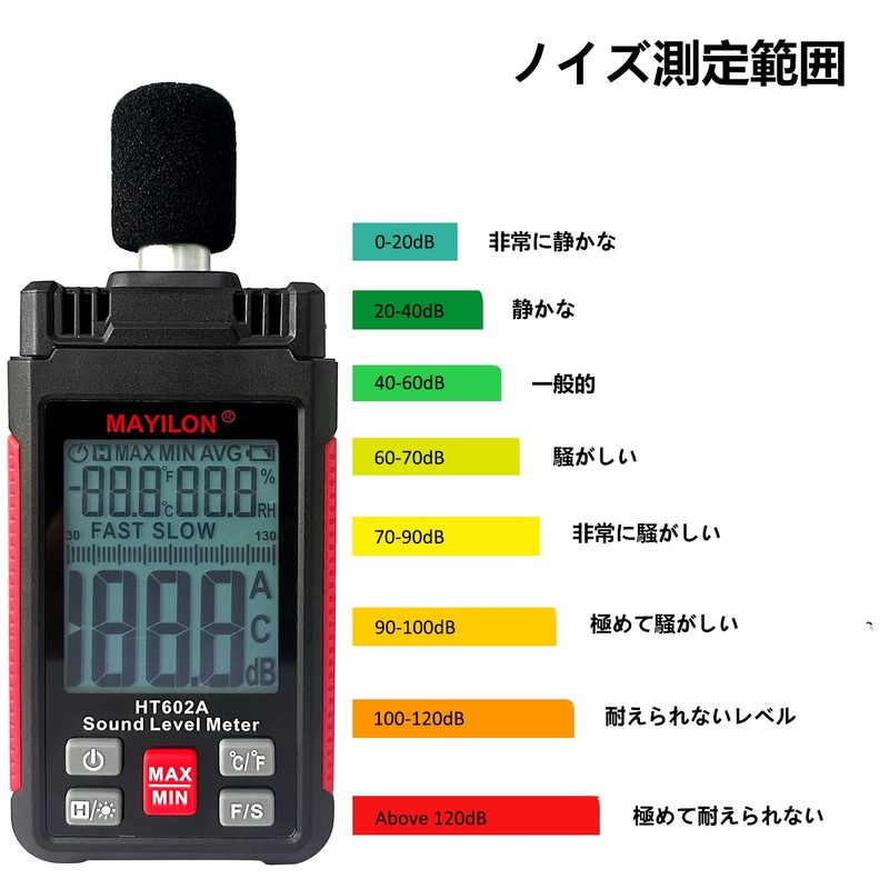- Wide range of applications: This acoustic level meter is used to measure sound levels in the environment. For example, factories, workshops, schools, homes, office towns, traffic roads, acoustics, etc. Also suitable for noise work, product quality control, health prevention and control etc. You can also measure the ambient temperature and humidity