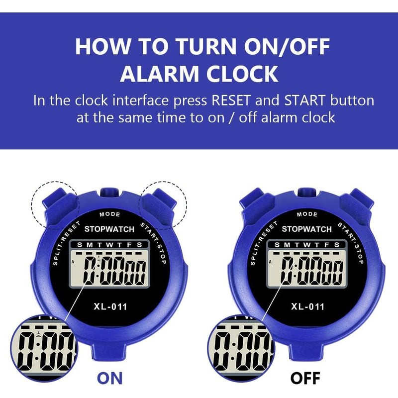 • ✅MULTIPLE MODES: Time-Out Mode has separate start/stop & reset buttons, while Split Mode times single & split events, freezing the split-time display while total time continues. Time/Calendar displays the hour, minute, seconds, date, day & alarm.