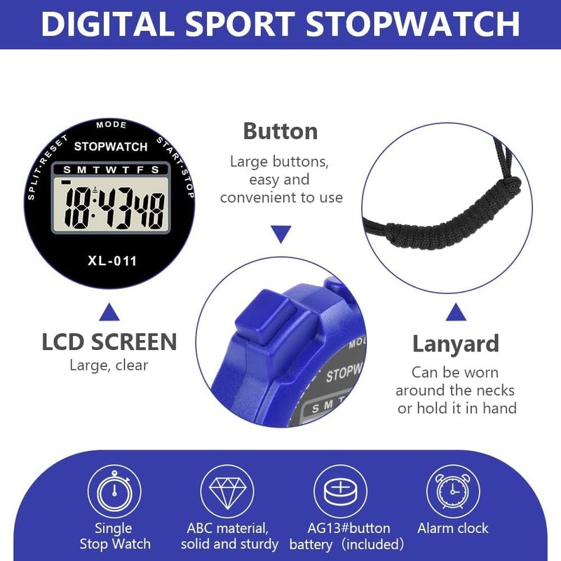 • ✅Large Display: Our stopwatch features a large and clear LCD digit display, you can easily read the time, calendar, minutes, seconds, and 1/100th seconds.