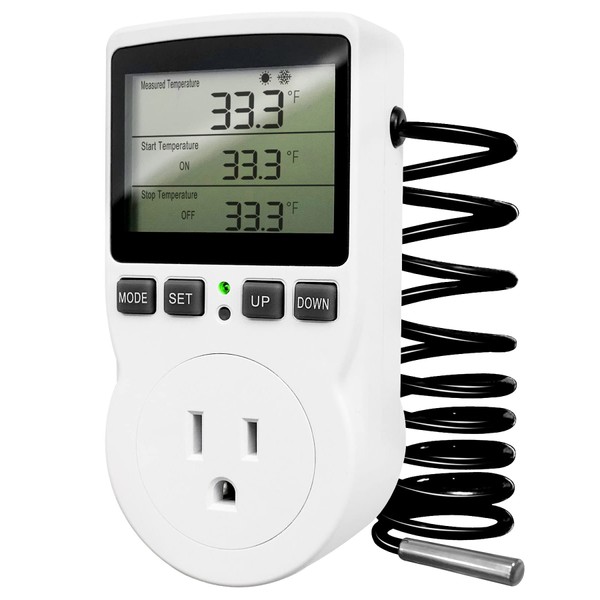 - Easy to Operate: Simply plug the unit into the thermostat plug socket and set the parameters to work as programmed, plug in thermostat for heater contains 1.7M NTC 10K temperature sensor waterproof probe, 120V±15%AC 15A/120V 1800W, any questions welcome to contact us
