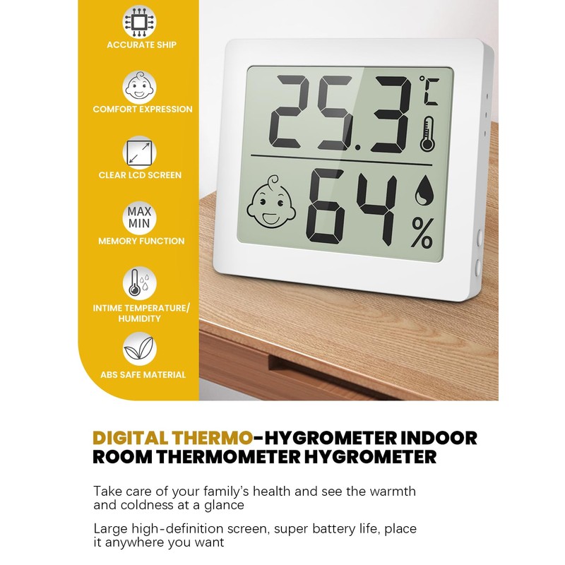 The thermo-hygrometer uses a high-precision sensor to accurately measure changes in ambient temperature and humidity. It can be used with everyday household appliances to accurately detect temperature and humidity changes, helping to create a comfortable living environment.