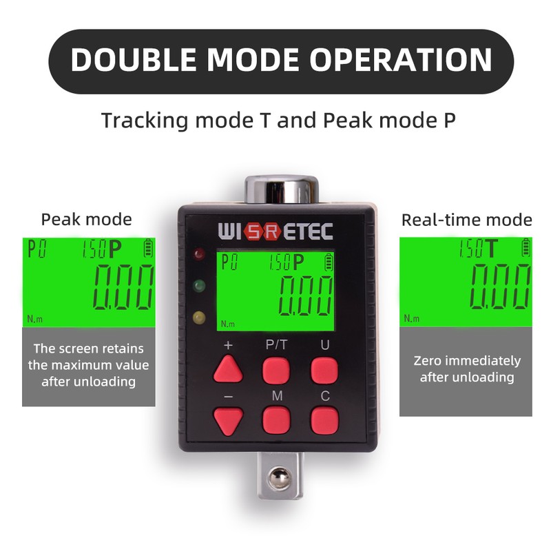 1、[Digital Torsion Wrench]: This digital torsion tester is small and elegant, flexible and convenient, easy to use and portable. Suitable for narrow working environments and easy to work in tight spaces. 2、[High Precise]: Bi directional measurement with exceptional accuracy. Benefits from bi-directional reading errors of ±2% clockwise and ±2.5% counterclockwise, ensuring highly accurate torsion application for automotive, and motorcycle repairing projects. 3、[Digital Backlit Display]: A large digital display with a backlight, clear display, and easy to read design allows for effortless torsion reading, even in low light conditions or during nighttime projects. With backlight on/off function. 4、[Torsion Value Preset Function]: 10 groups of different torsion values can be preset PO-P9, for different bolts and torsion requirements, can be preset in advance, directly call. The preset values are displayed in the first column of the screen, making it convenient for the operator to view the current preset values and groups. 5、[Two Working Modes Switchable]: Freely switchable between Tracking and Peaking modes. In the peaking mode, it records the maximum value and up to 500 data can be stored, and the stored data can be recalled at any time, selective deletion. In the tracking mode, it increases with increasing applied forces and decreases with decreasing forces, convenient measurement. 6、[Five Units Switching]: Five units are available, you can choose between kg.cm, kg.m, N.m, lb.in, and lb.ft according to your usage habits. 7、[Buzzer and LED Indicator Light Function]: With a buzzer and LED alarm light alarm function. 80% red light blinking, 90% green light blinking, and one hundred percent three color light blinking at the same time. 8、[Easy Storage]: Comes with a plastics storage box for easy storage and convenient transport, and all the accessories can be neatly stored. 9、[Wide Applications]: Widely used in the automotive, bicycle motorcycle, and machinery repairing industries.