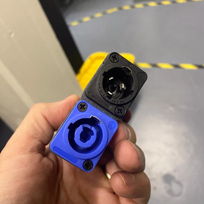 Equipped with a genuine Neutrik Powercon Blue male and True1 male panel mount connection.