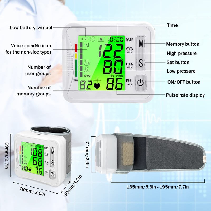 - Reliable & Durable Measurements: Count on our wrist blood pressure monitor for accurate and consistent readings. Each device undergoes rigorous testing to ensure high precision and reliability. Trust in a product that delivers dependable results, helping you maintain your health with confidence. Experience peace of mind with every measurement.