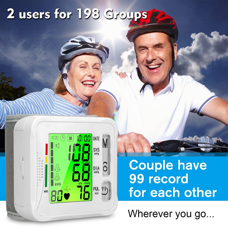 - Dual User Memory Storage: Keep track of your family's health with our blood pressure monitor that supports two users, each with 99 memory slots. This feature allows you to monitor and compare health trends over time, ensuring you stay informed about your loved ones' well-being. Easily access past readings to make informed decisions about health management.