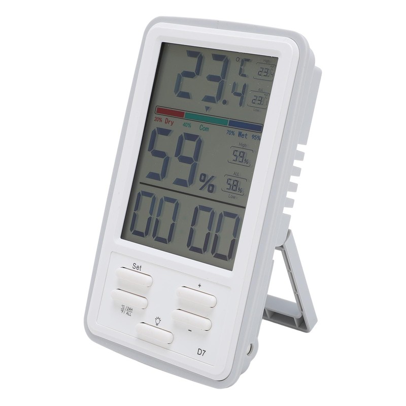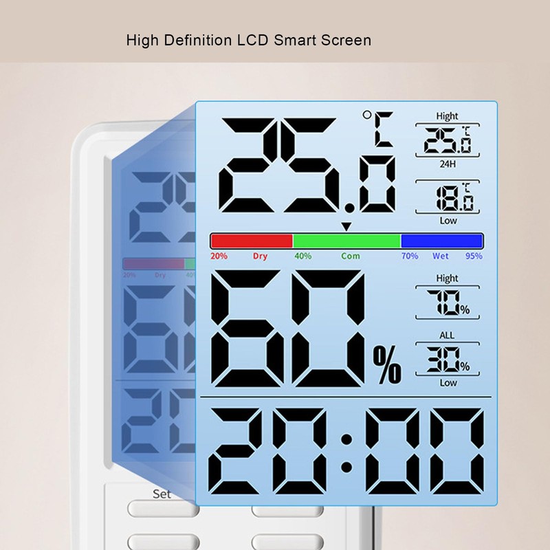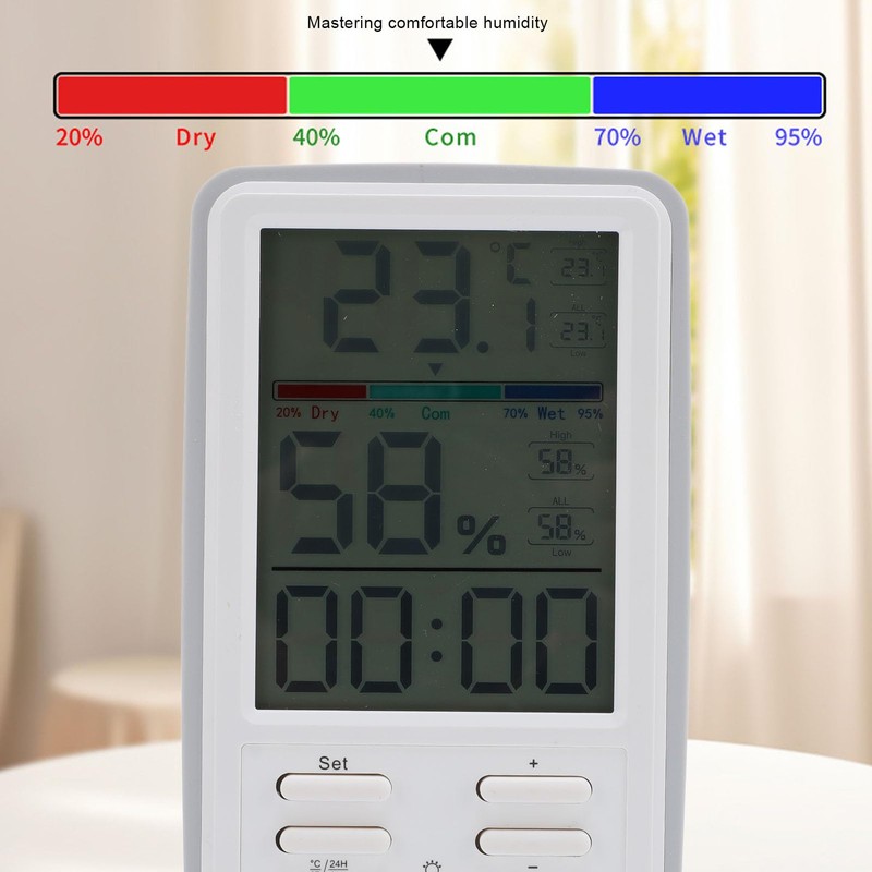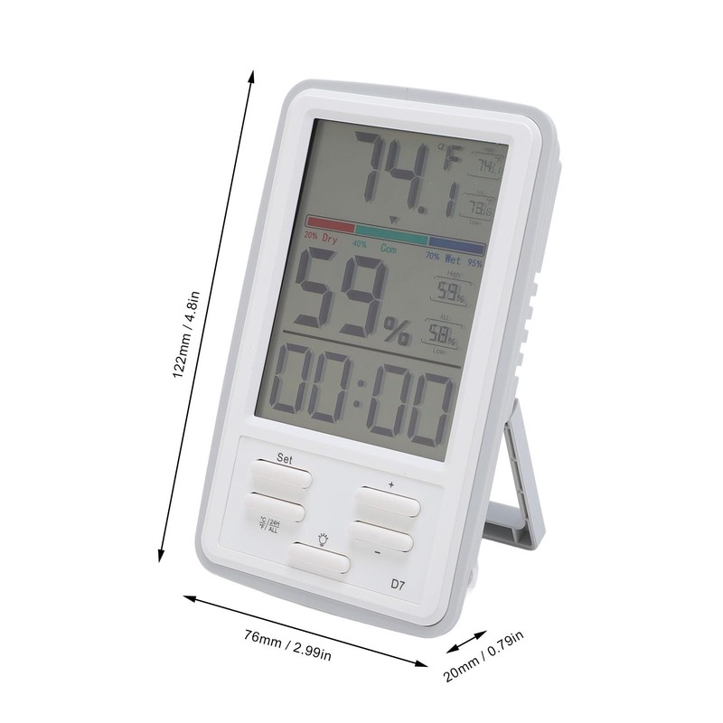 - [Einfach zu bedienend] Einfach zwischen Celsius und Fahrenheit -Einheiten mit der Presse einer Taste umschalten. Der große LCD -Bildschirm mit kräftigen Zahlen ermöglicht eine einfache Anzeige von Temperatur und Luftfeuchtigkeit.