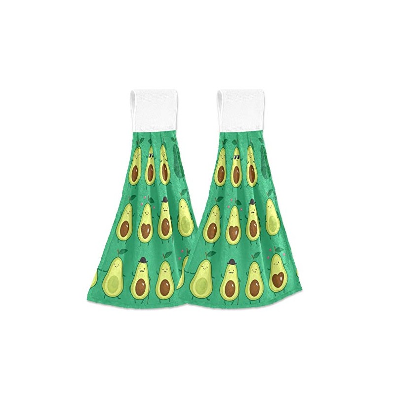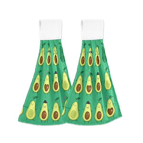 DIGTIA Summer Avocado Green Kitchen Hand Towels 2 Pack Funny Cute Fruit for Bathroom Hanging Tie Towel with Loop