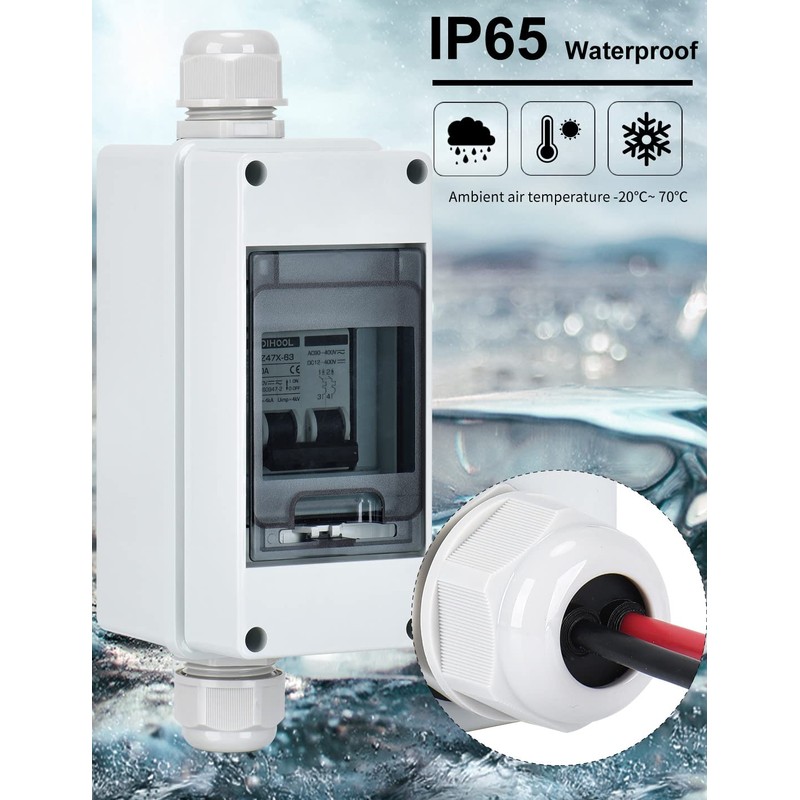 DZ47X miniature circuit breaker is used for AC and DC circuit. It is suitable for circuit equipment with voltages of DC12~400V and AC90~400V, and is often used to protect the circuit between the solar panel and controller. This product is composed of a waterproof box, cable gland and circuit breaker. It has the function of IP65 waterproof and dustproof, and is safer to use. It is suitable for indoor, outdoor eaves, distribution board, under the solar panel, warehouse, etc. place.