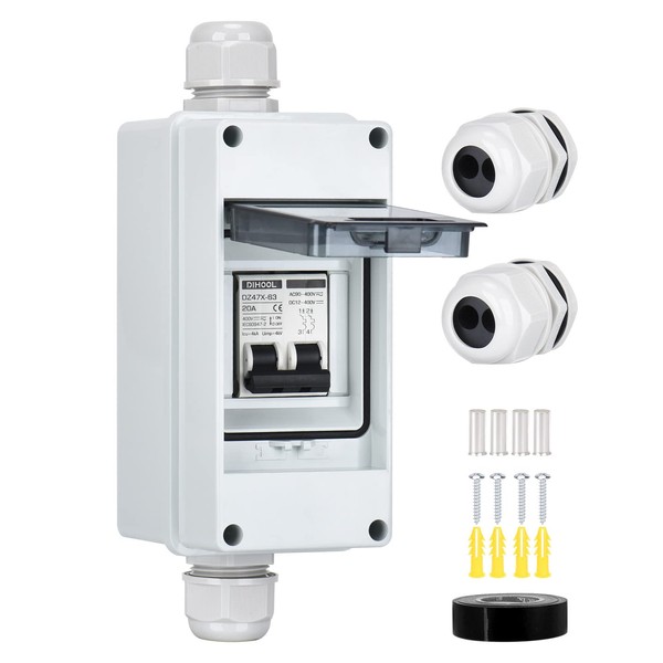 DIHOOL 20 Amp Circuit Breaker with DIN Rail Box, DC Disconnect Solar Switch 400V