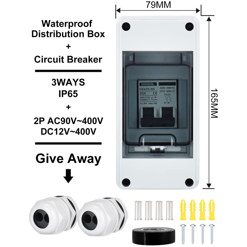 • 20 Amp AC/DC Circuit Breaker, No Polarity, IP65 Waterproof Box