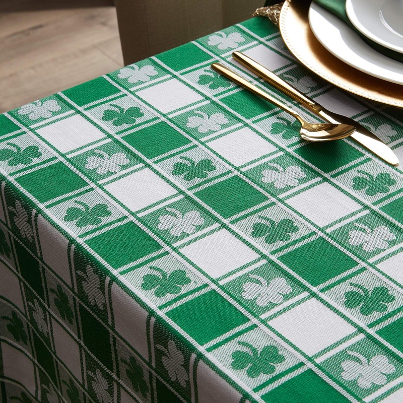 DII 100% Cotton, Machine Washable, Party, St Patrick's Day & Spring Tablecloth, 60x84" , Green & White Check with Shamrock, Seats 6 8 People