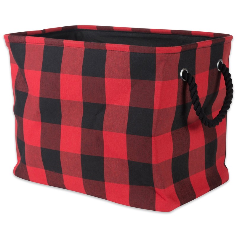 DII Buffalo Check Storage Collection Collapsible Bin with Handles, Medium Rectangle, 16x10x12, Red & Black