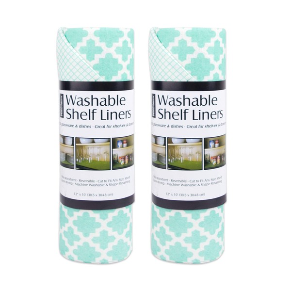 DII Fridge & Shelf Liner Collection Non-Adhesive, Cut to fit, Machine Washable, 12x20, Lattice Aqua Lattice, 2 Piece
