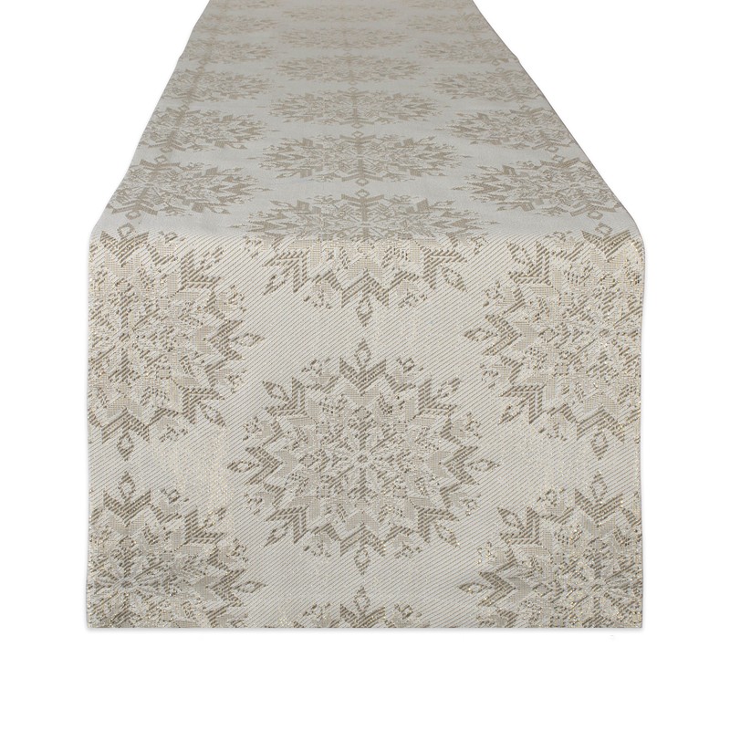 DII Holiday Dining Table Linen Sparkle Metallic Kitchen Décor, Table Runner, 14x72, Jacquard Snowflakes