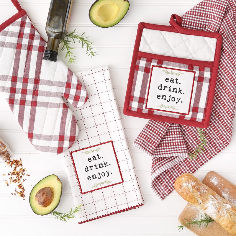 - A KITCHEN SET TO TACKLE ANY JOB: Each set includes 2 dishtowels measuring 18x28", 1 potholder measuring 9x8", and 1 oven mitt measuring 7x13" to tackle all of your cleaning and cooking kitchen tasks