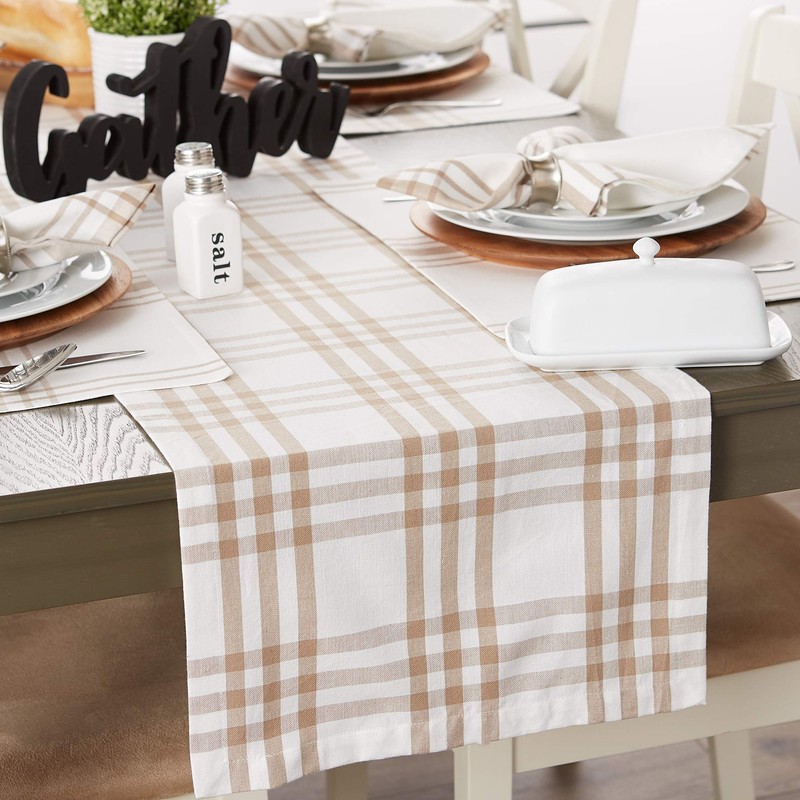 DII Home Sweet Farmhouse Plaid Tabletop Collection, Table Runner, 14x72, Stone