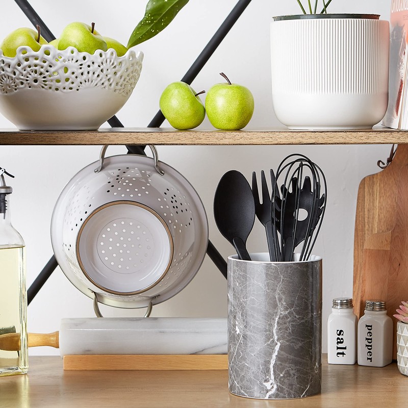 DII Kitchen Accessories Collection Ceramic, Utensil Holder, Black Marble