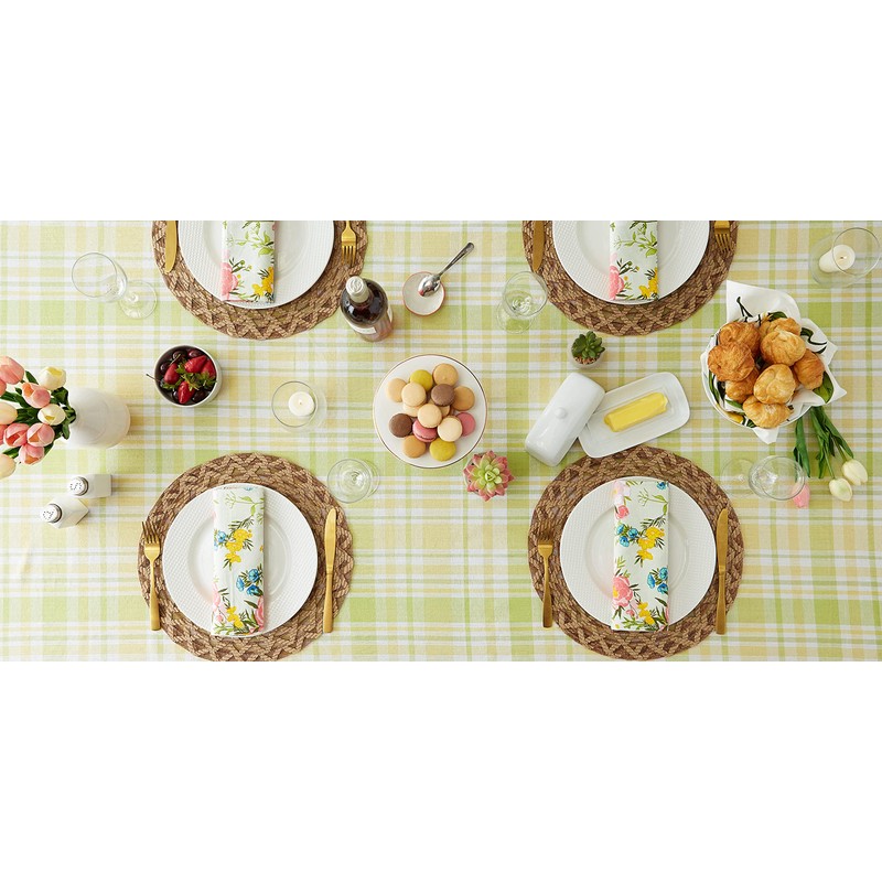 - ADDS A FINISHING TOUCH: Our lemon bliss plaid tablecloth is a bright fresh pop of color for your dining table; Beautiful on its own or layered with other items from our collections