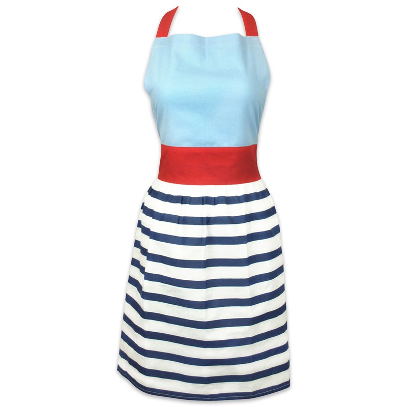 DII Women's Cotton Skirted Kitchen Apron for Cooking, Baking & Crafts, Adjustable with Generous Waist Ties, Nautical Stripe, One Size