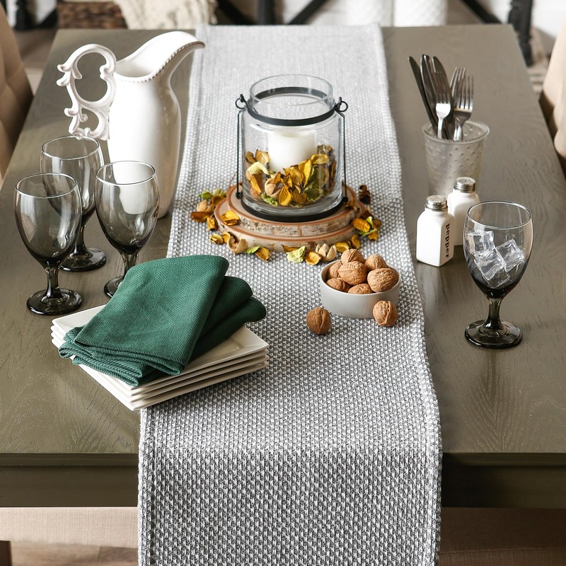 - TIMELESS DESIGN: Like a favorite knit sweater, this table runner provides texture and is full of detail; Fringed edges have a casual look that works with any style of household décor