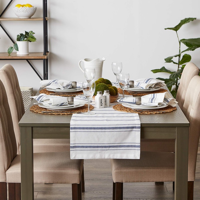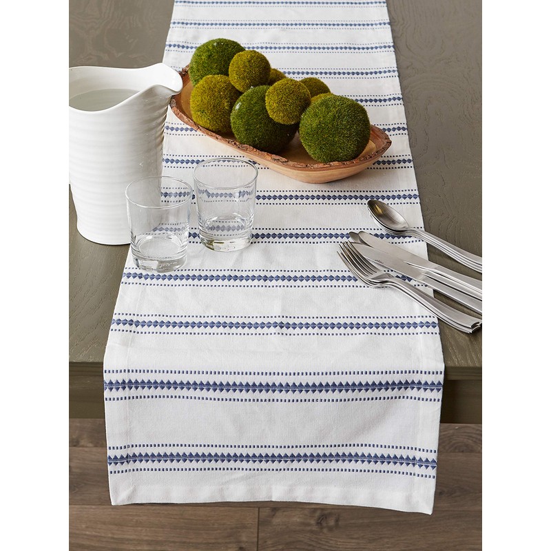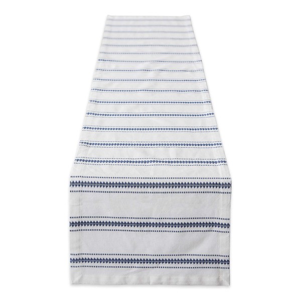 DII Zig Dobby Tabletop Collection, White Cotton Background with Embellished Stripe, Table Runner, 14x108, French Blue