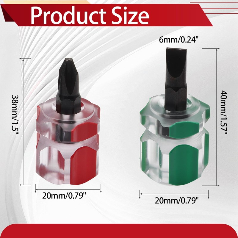 The short screwdriver set include cross-head screwdriver and slotted screwdriver, small size design makes them can be tucked into bags easily and occupy little space, easy to operate and carry, high hardness and torque, improve work efficiency and meet your daily needs.