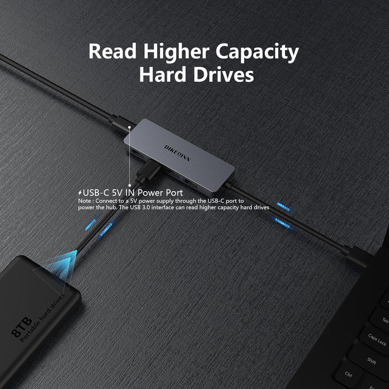 DIKEQINN USB 3.0 Hub 4 Ports with USB-C Power Port, High-Speed Data Hub & Ext...
