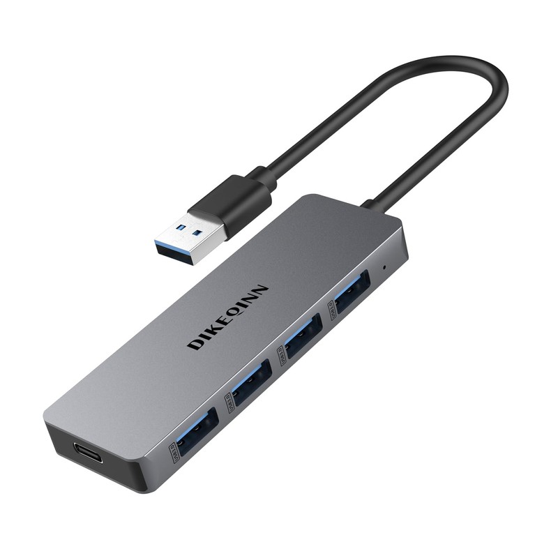 DIKEQINN USB 3.0 Hub 4 Ports with USB-C Power Port, High-Speed Data Hub & Extender for Laptop, Desktop, PC - Compatible with Windows, Linux, HP (USB-A)