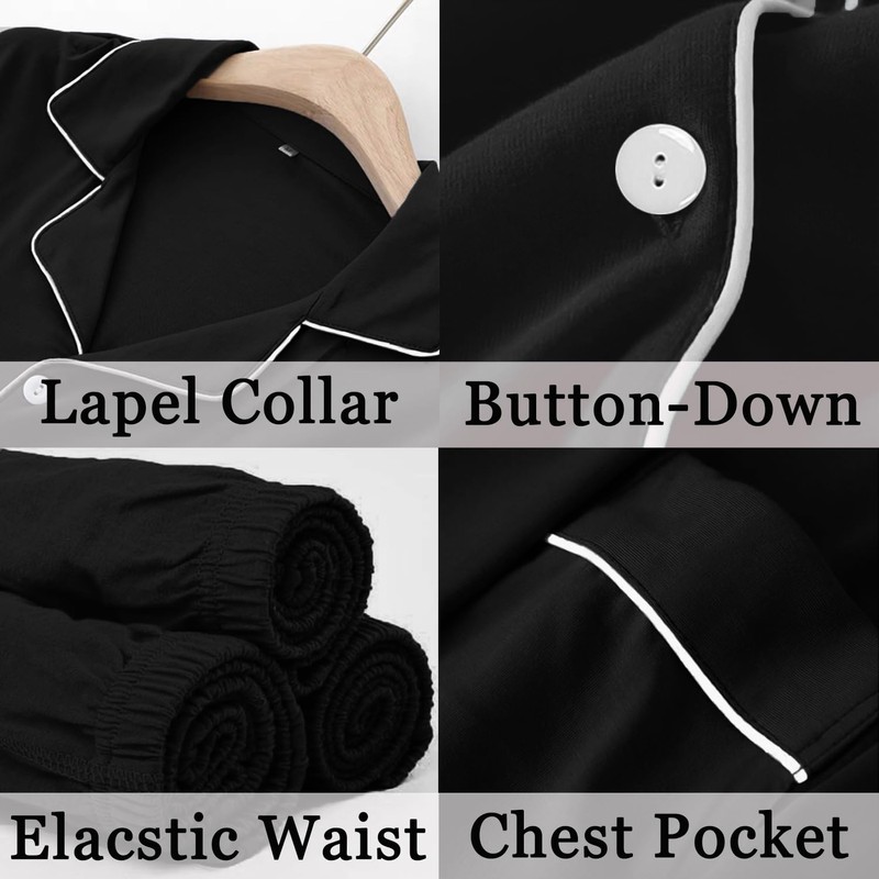 - Christmas Pjs: Women/Men Christmas Pjs Set also as matching pjs for couples featuring festive inspired design sleepwear styles. Pajama Top: Long sleeve sleepwear with classic notch collar, button down and contrast piping. Pajama Pants: Elastic waistband that fits for any body size. Lightweight and skin-friendly matching pjs for women and men.