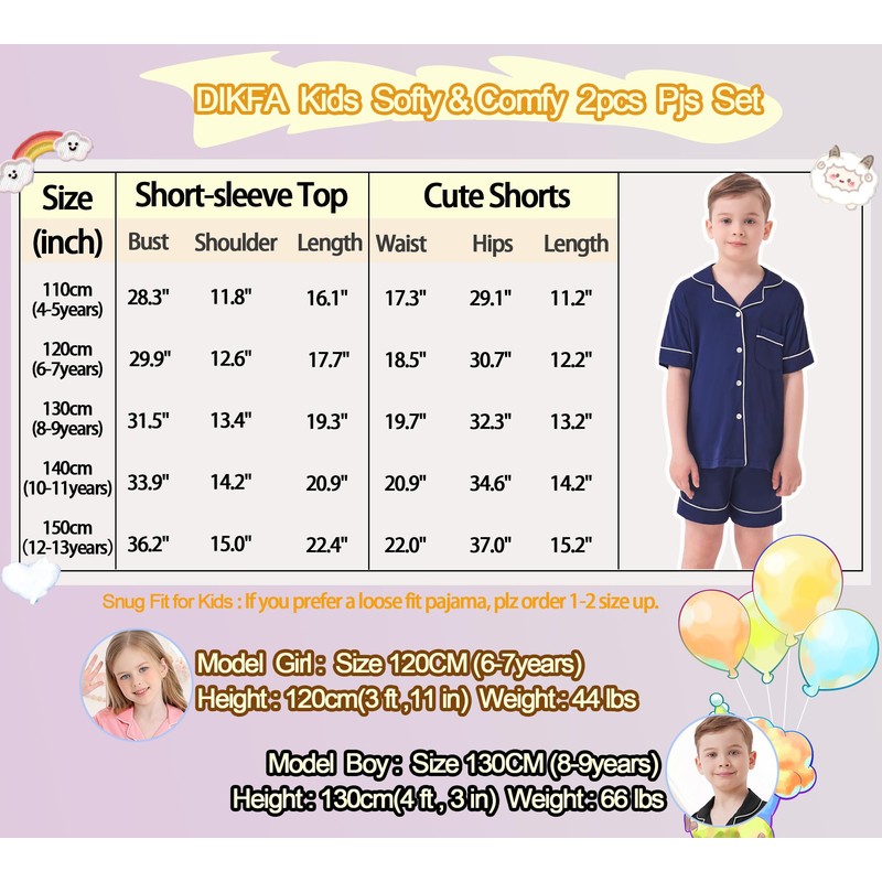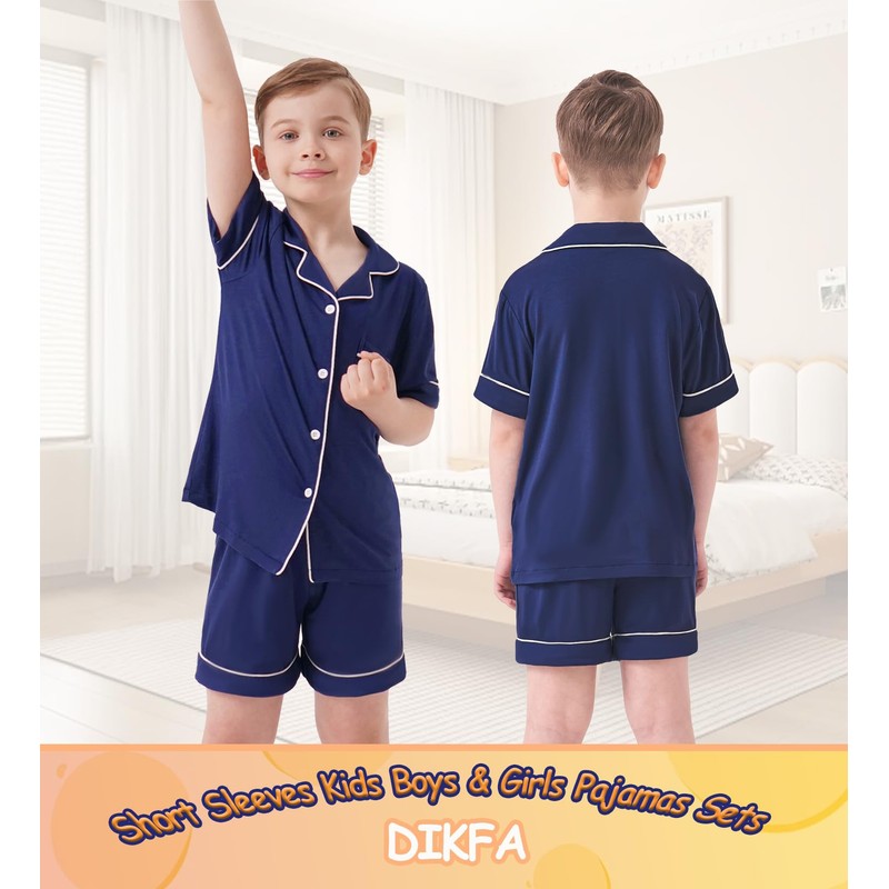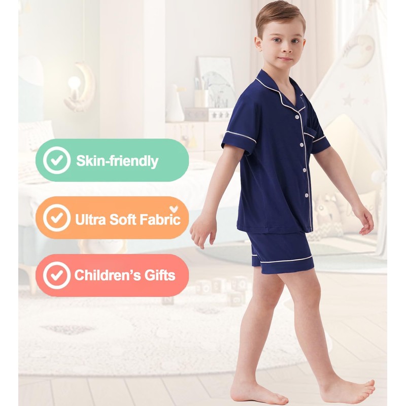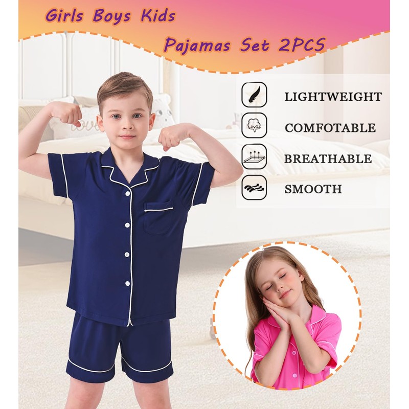 - Design - Boys girls pajama sets include Short Sleeve Shirt and Cute Shorts. Kids pajamas set with elastic waist shorts, button-down closure, left chest pocket, very cute and classic loungewear set for kids.