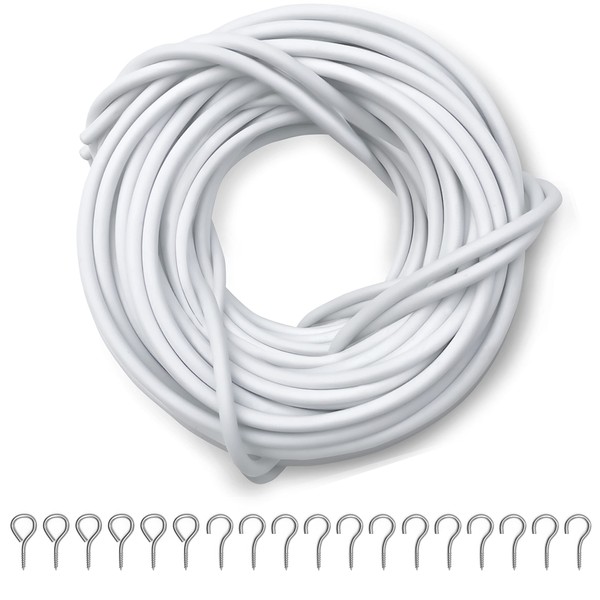 Dikots Net Curtain Wire and Hooks Set - 20M Curtain wire kit includes 40 Eyes & 40 Hooks - A Multipurpose Wire