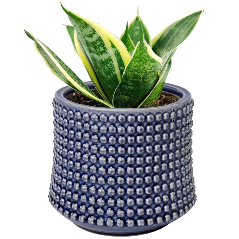 DILATATA 5.5 Inch Ceramic Planter Pot for Indoor Plants with Drainage Holes Hobnail Patterned Flower Planter Blue Succulent Plant Pot Cactus Plant Pot