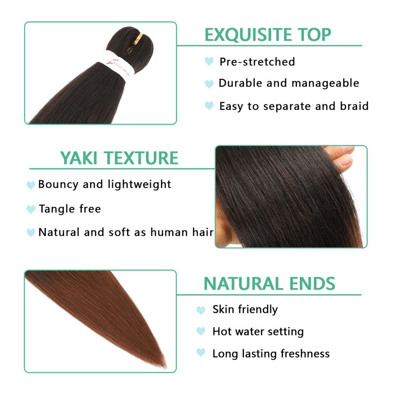 - 【Braiding Hair Pre Stretched Material】 Dilekay Ombre Brown Braids Hair Extensions Is Made Of High Quality Low Temperature Flame-Retardant Synthetic Fiber. Yaki Straight Texture, Natural Looking and Soft Touch As Real Human Hair.