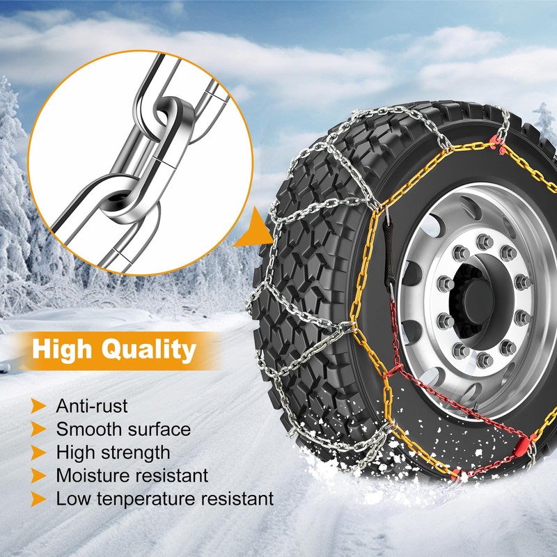 - 【Durable and Reliable】: Built to last, these snow chains are crafted from high-quality materials that can withstand the harsh elements. They are resistant to wear, tear, and corrosion, ensuring they will serve you well season after season. You can rely on them to enhance your vehicle's safety and performance whenever winter weather strikes.