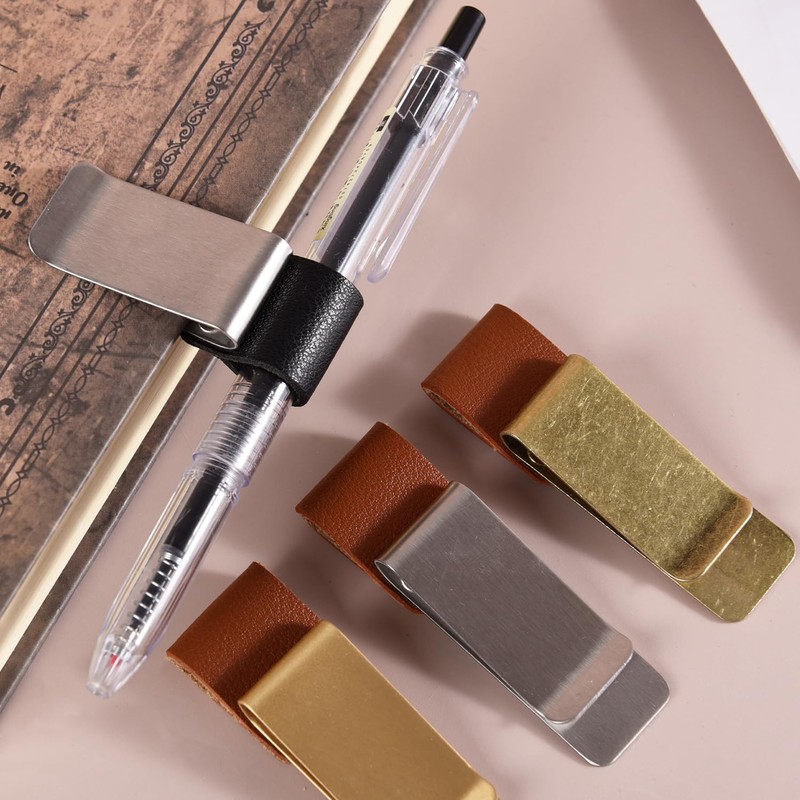 • 【Durable Materials】These portable pen clips are made from a combination of stainless steel clips and PU leather rings. The pen holder clips securely fix your pen in place, preventing loss and adding convenience to your daily life.