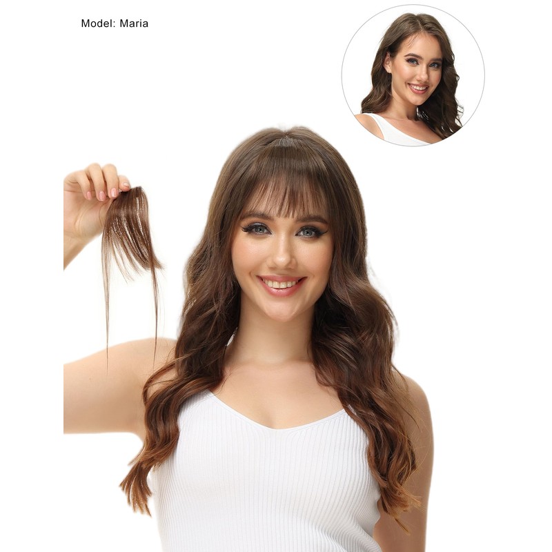 - Wispy Bangs Size: These bangs measure 5 inches in the center with 9 inches longer pieces on the sides for added versatility and a natural blend with your hair. Weighing only 4 grams, they are lightweight and comfortable.