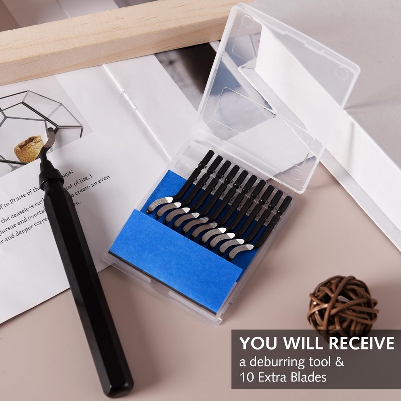 Take your metalworking and DIY projects to the next level with our Deburring Tool. Perfect for smoothing rough edges on brass, steel, aluminum, copper, PVC pipes, and 3D-printed plastic parts, this versatile tool is an essential addition to any workshop. Featuring durable high-speed steel blades, an ergonomic handle, and easy blade rotation, this tool offers professional-level results every time. With 10 extra replacement blades, youll be ready for any job, whether youre a professional plumber, mechanic, or DIY enthusiast.