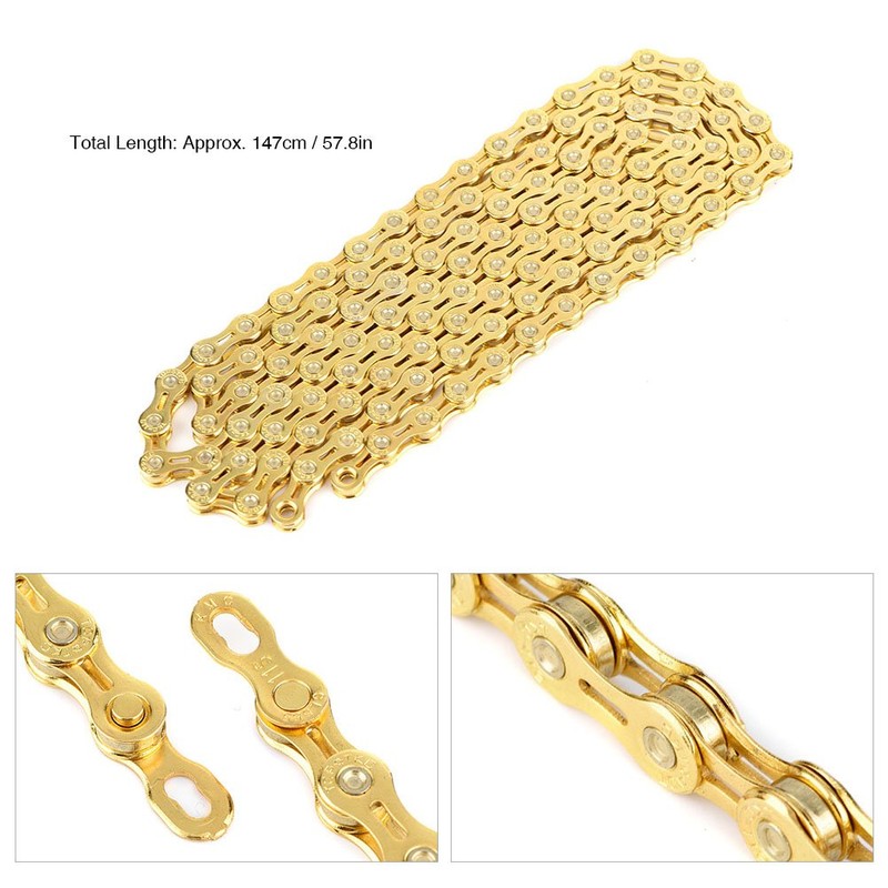 Dilwe Bicycle Chain 11 Speed Gold Hollow Bicycle Chain Gear Chain for 11 Speed Bikes Accessories