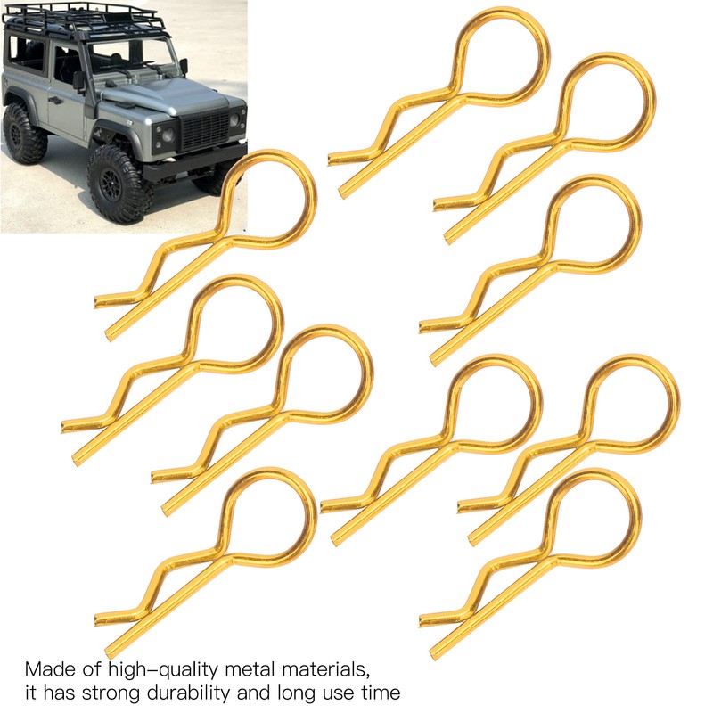 Dilwe RC Car Shell Clips, 10Pcs RC Car Shell Clip R-Shape Metal Body Clips Pins Secure Shell Pin Compatible with 1/5 1/6 1/8 1/10 RC Car(Gold)