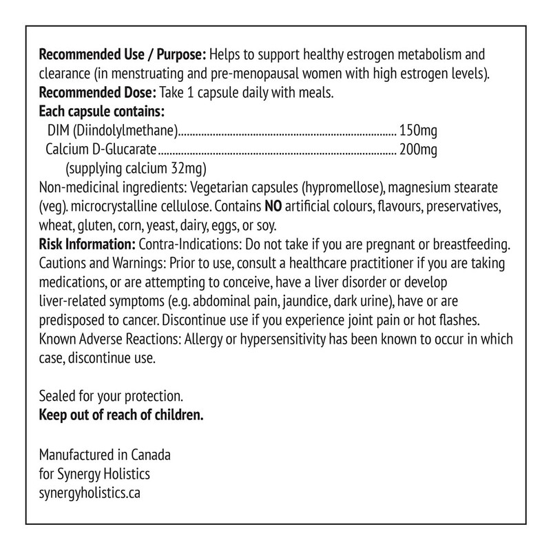 DIM Synergy - Dim Supplement with Calcium D-Glucarate – Supports Desirable Estrogen Metabolism and Clearance – Hormone Balance Supplement for Women – 150mg DIM & 200mg Calcium D-Glucarate - 120 Veg Caps