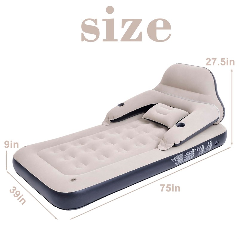 • Dimension: The mattress measures 75" x 39" x 27.5" and can hold 220 pounds.(Air pump not included)