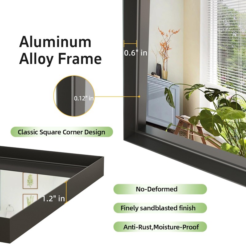 - 【Durable Black Metal Framed Mirror】Dimelax rectangular wall mirror has the most chic spray paint finish. The black bathroom vanity mirror is made of premium alumium alloy frame, which is anti-rust and non-deformed stylish and more durable, Light weight, good corrosion resistance and wear resistance. It's a great choice for your home life