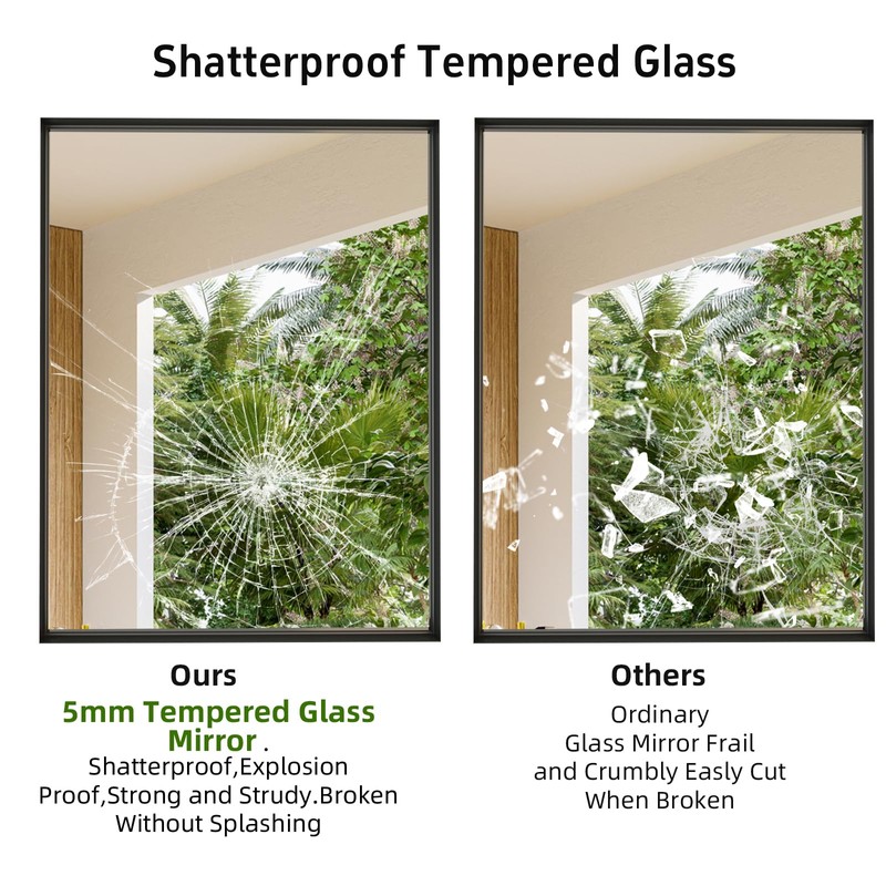 - 【5MM Shatterproof Tempered Glass】Unlike other fragile mirrors, DIMELAX rectangle mirrors are made of 5mm tempered glass which are shatterproof and sturdier than ordinary mirrors. No harm as it will not splash into pieces when it's broken.