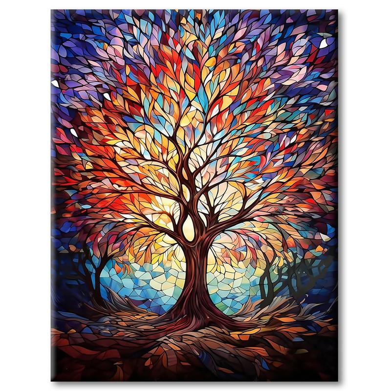 Premium 12x16 inch canvas with a vibrant, pre-printed Tree of Life design (symbolizing growth and harmony).
