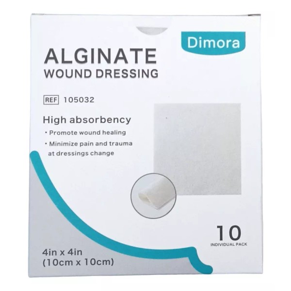 Dimora Apósito de alginato de calcio: 4 x 4 pulgadas, 10 paquetes estériles individualmente sellados.