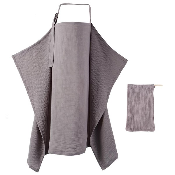 Dimoxii Nursing Cover for On the Go, Soft Muslin Nursing Cover with Storage Bag, Breathable Multi-Purpose Nursing Cover (Grey)