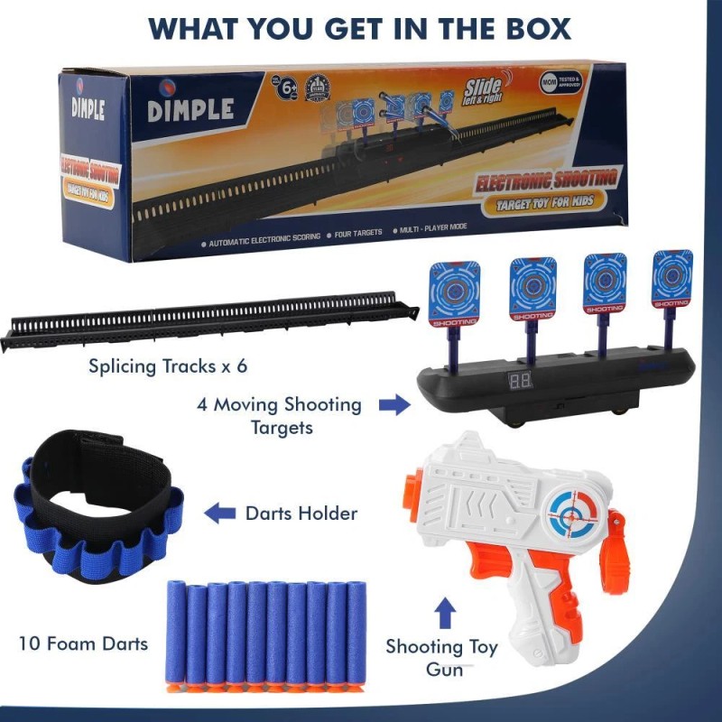 Dimple Ultimate Shooting Target Game Set for Kids – Rotating Obstacle Target Practice with 2 Blaster Guns, 24 Bullets, 2 Dart Holders & Self-Popup Moving Digital Target – Compatible with Nerf Toy Guns, Nerf Blasters, Shooting Game, Target Practice, Fun Outdoor Toy, Interactive Sports Game, Nerf Accessories, Kids Gift