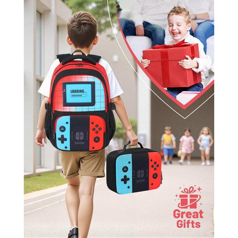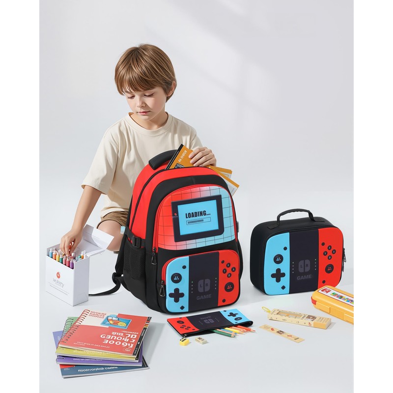 • 【STYLISH & FUN】Kick off the school year in style with this bold and colorful boys backpack and lunch box set! Featuring a vibrant red and blue design with a cool game controller pattern, it’s sure to be a hit with both boys and girls. Fun, fashionable, and full of personality—it’s the perfect way for your child to stand out at school!