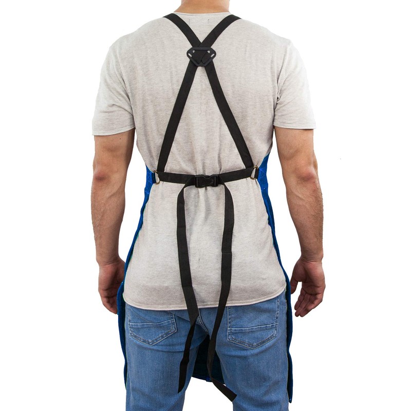 DIMWELD Leather Welding Apron for Men Flame Retardant Thermal Workshop Welding Apron Adjustable Protective Clothing with 6 Tool Pockets, blue