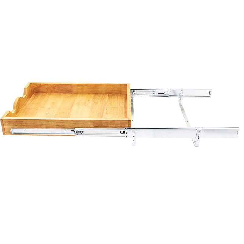Slides smoothly on a full-extension ball-bearing system, High-quality sturdy wire construction and U-shaped support brackets make the pull out shelves more durable. Eliminates clutter while maximizes space in cabinets or under the sink.